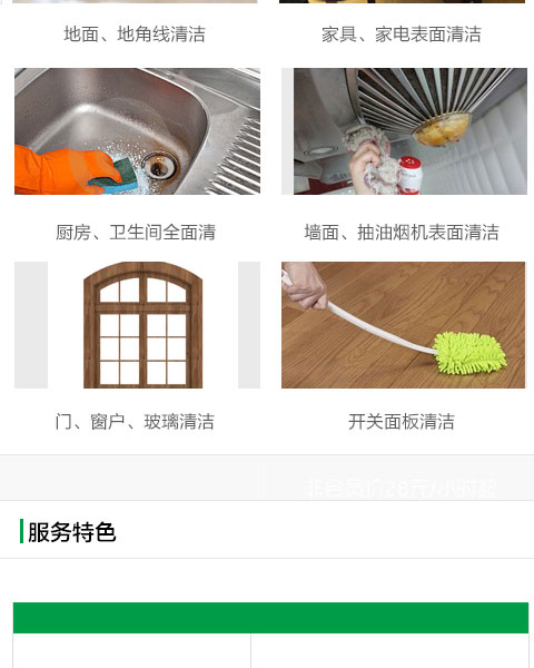 以上均為個人家庭用戶價格,企業用戶請通過“清潔外包”承接業務預約。